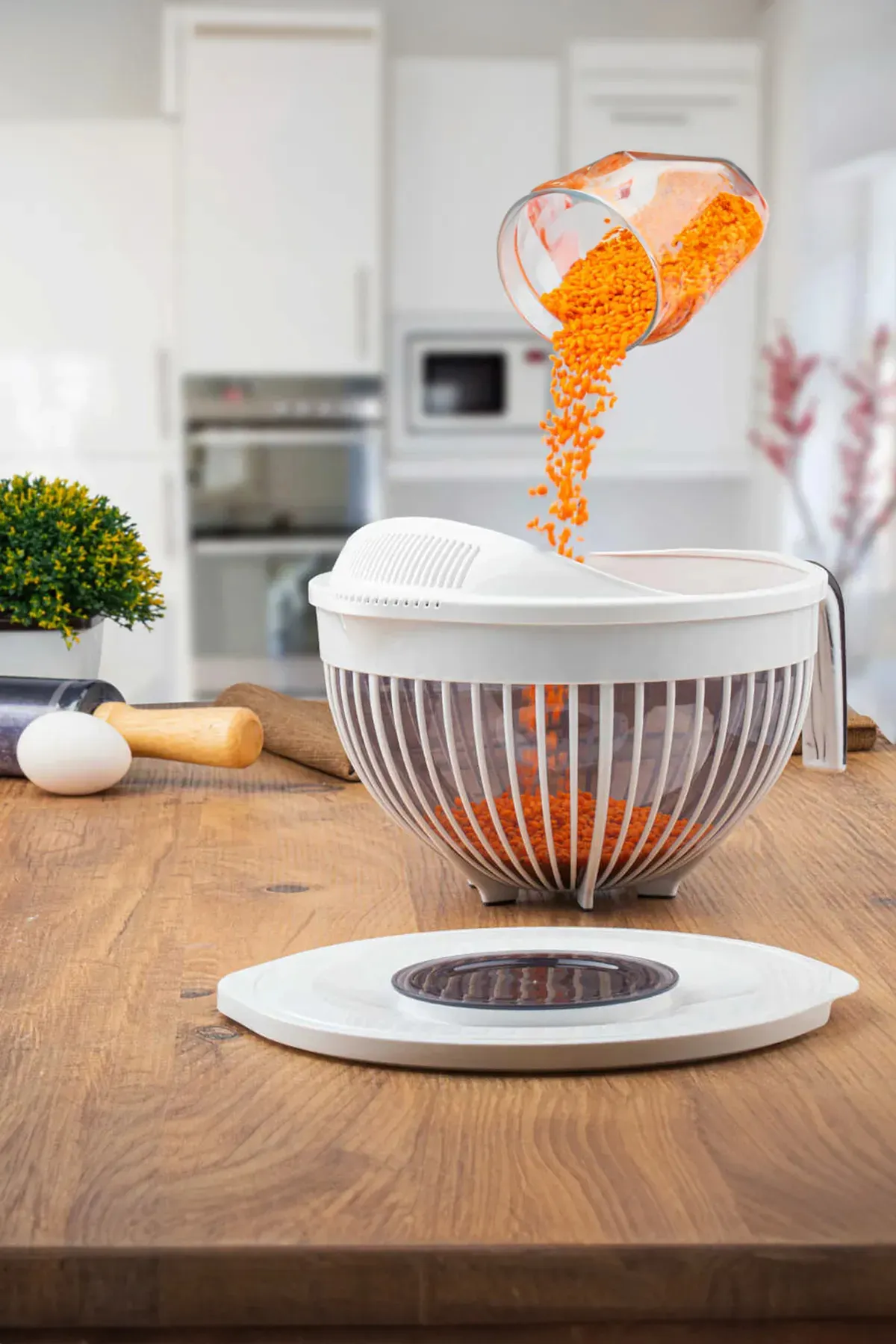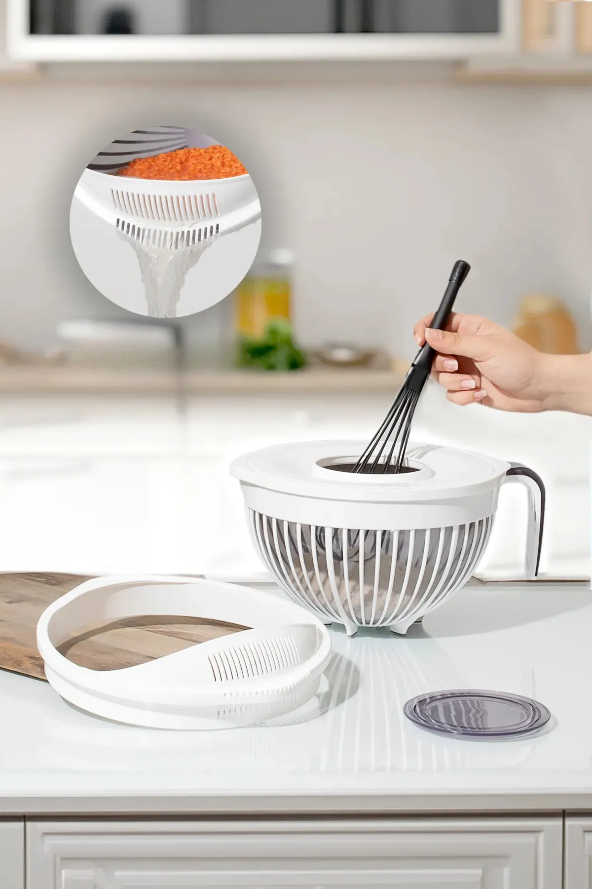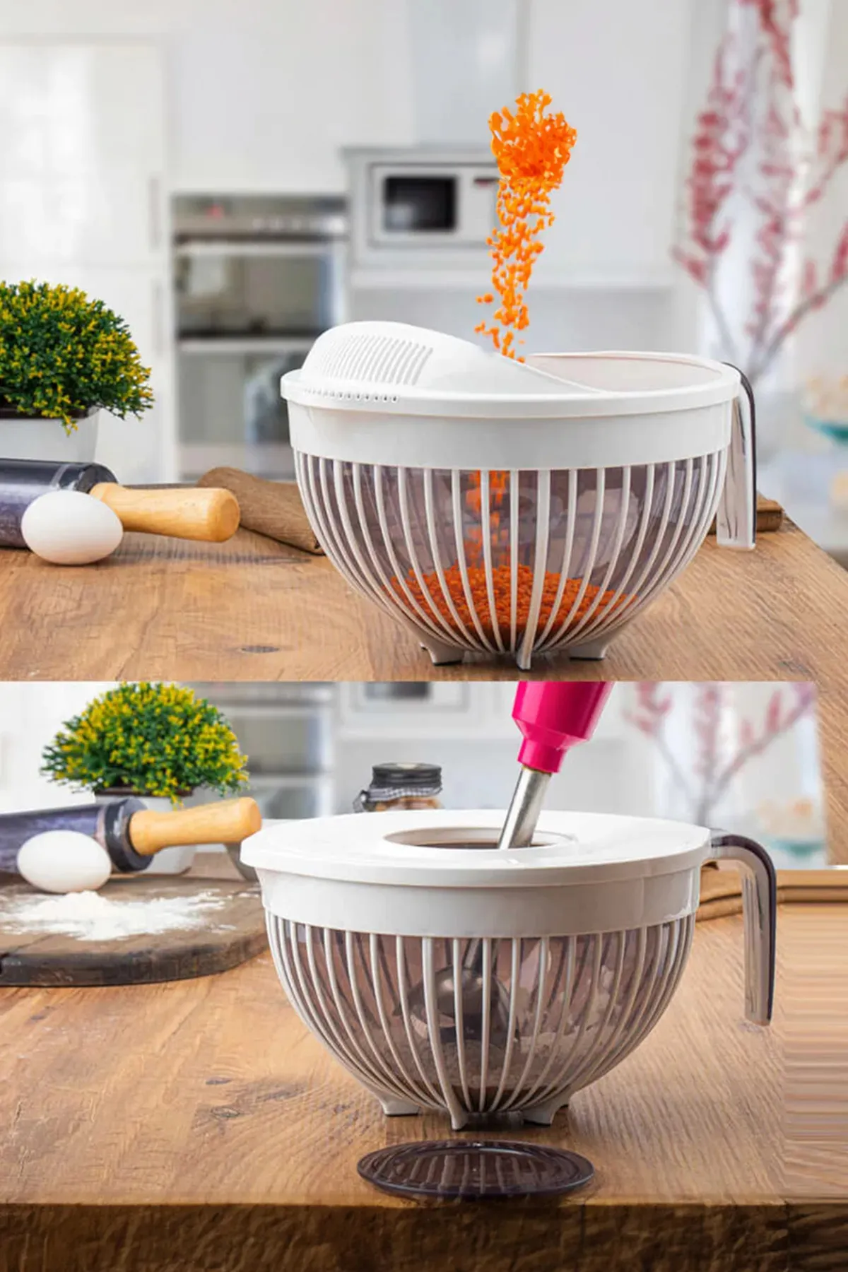 Crafted from BPA-free, food-grade materials, this bowl ensures both safety and durability. The built-in strainer makes draining ingredients quick and mess-free, while the ergonomic handle and non-slip base offer comfort and stability during use. A smart lid with a whisking slot helps reduce spills and messes when mixing, and best of all – it’s dishwasher safe, lightweight, and easy to store.